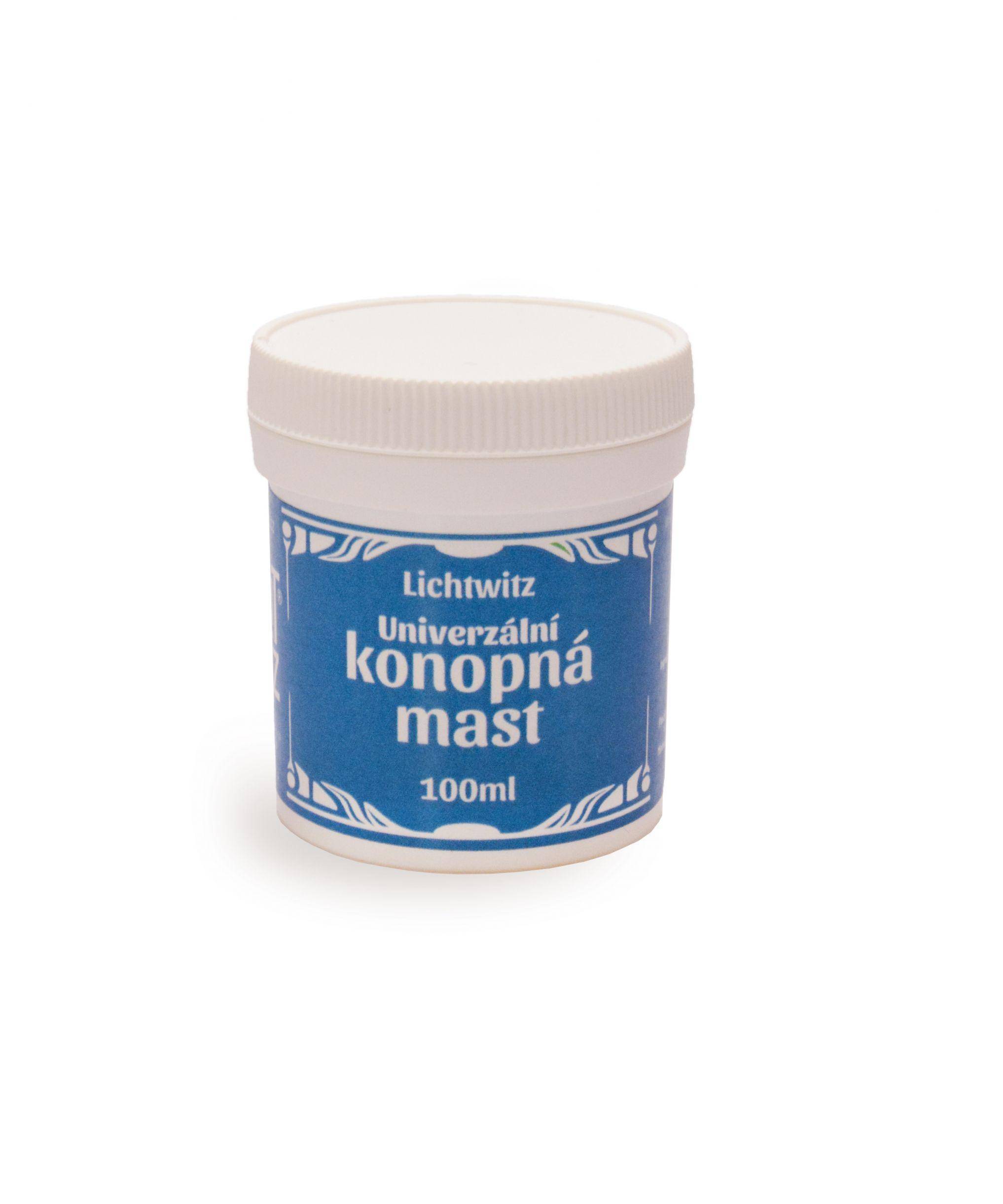 Univerzální konopná mast obsahuje kromě slunečnicového a jojobového oleje také olej konopný doplněný o výtažky z Konopí setého (Cannabis Sativa). Proto je vhodná k péči o namáhanou a podrážděnou pokožku se sklonem k vysoušení a vzniku prasklin. Neobsahuje konzervační látky, umělá barviva a parfémy a díky absenci složek živočišného původu ji mohou používat také vegani. V této masti se nevyskytuje THC.